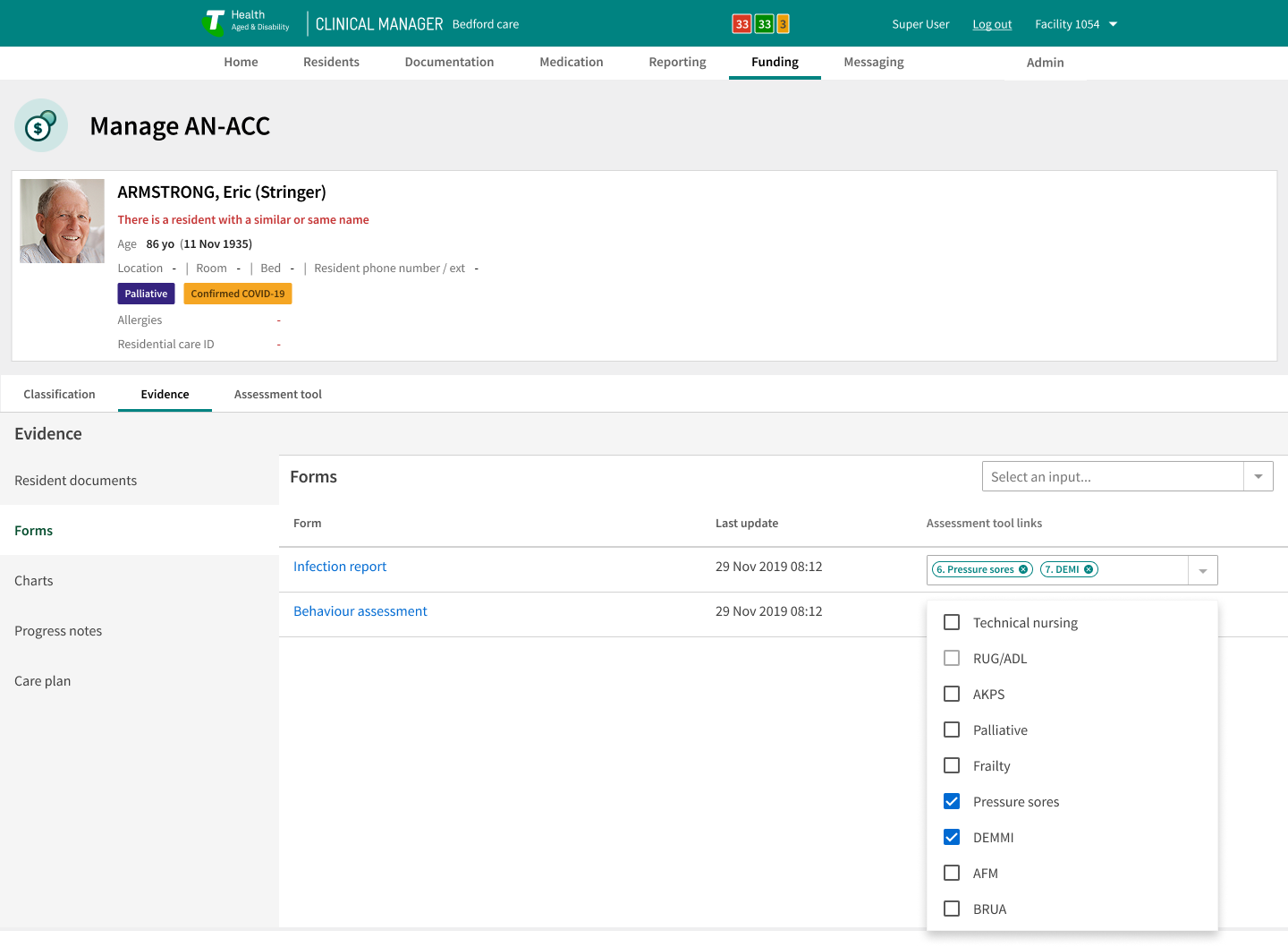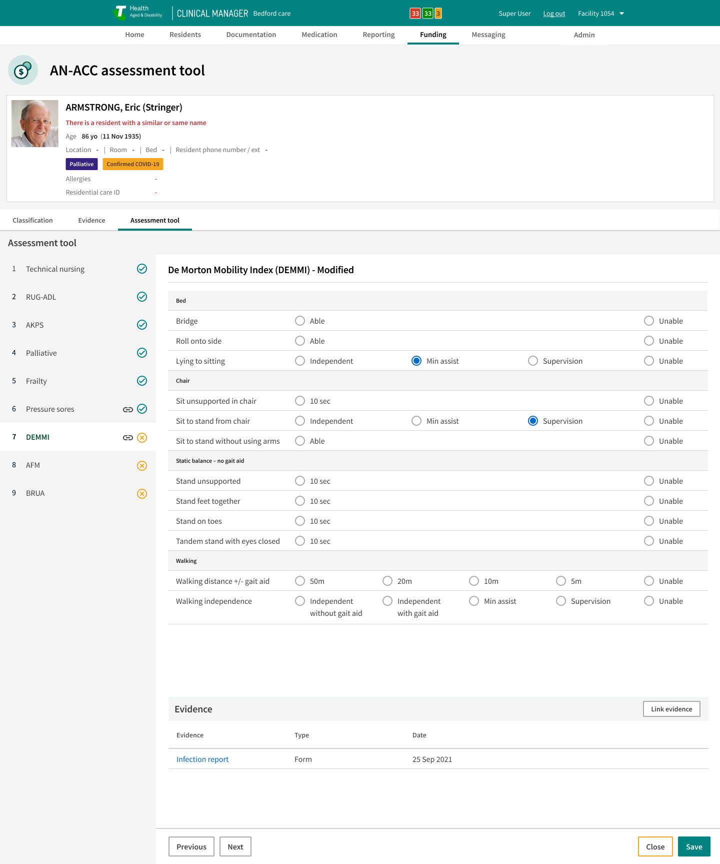 The design response was anchored in building a resident-centred assessment flow that precisely mirrored the structure of the AN-ACC tool, giving facilities superior visibility of their collected evidence and potential funding risk.