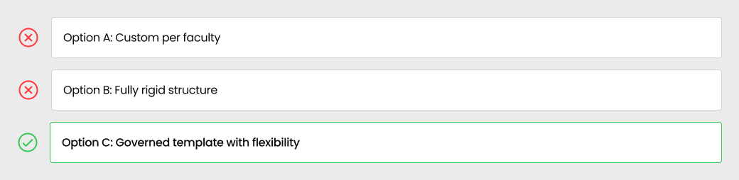 This reduced variation across units, improved student wayfinding, and gave teaching staff a reliable starting point when setting up or maintaining courses.