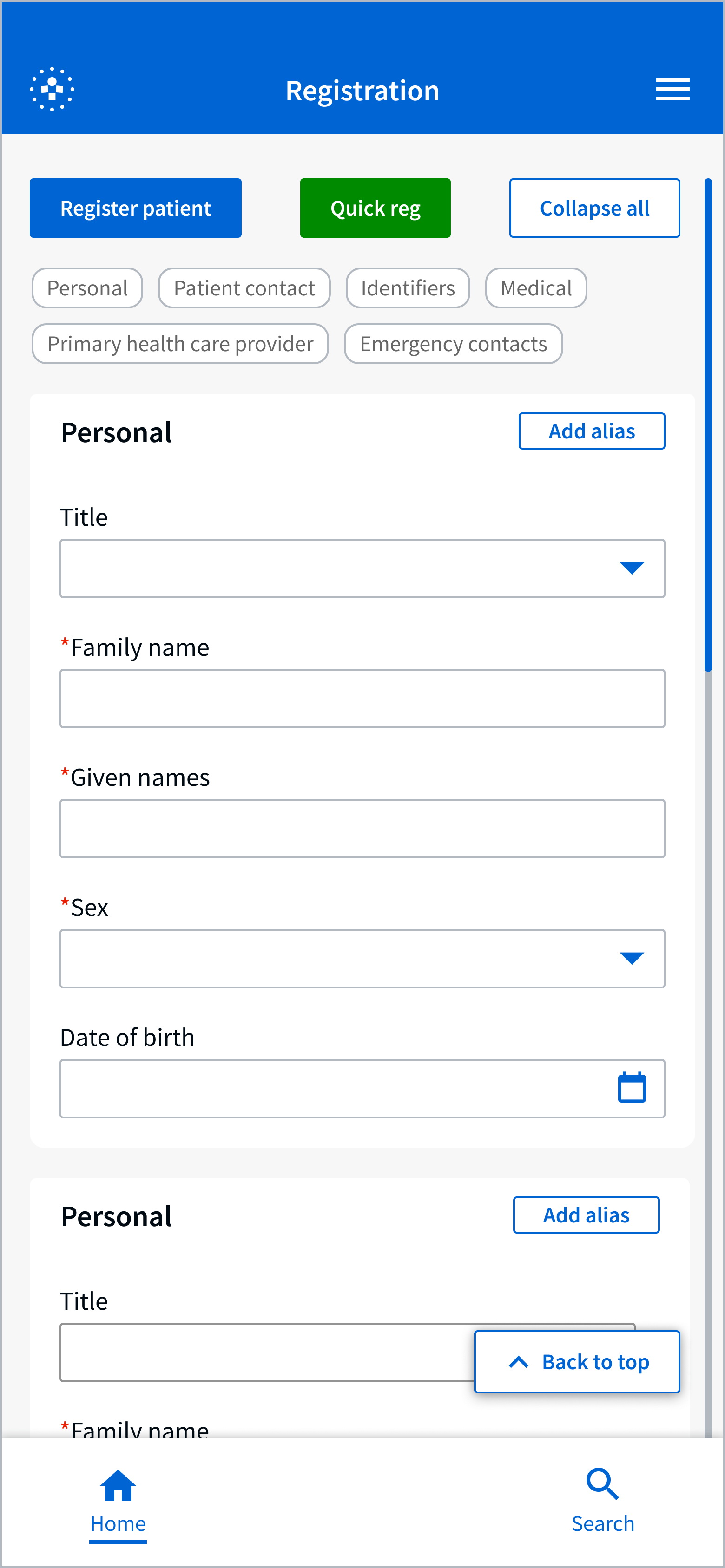 | Reusable patient card | Modelled on FHIR Patient + Encounter. Supported consistent views across modules. |