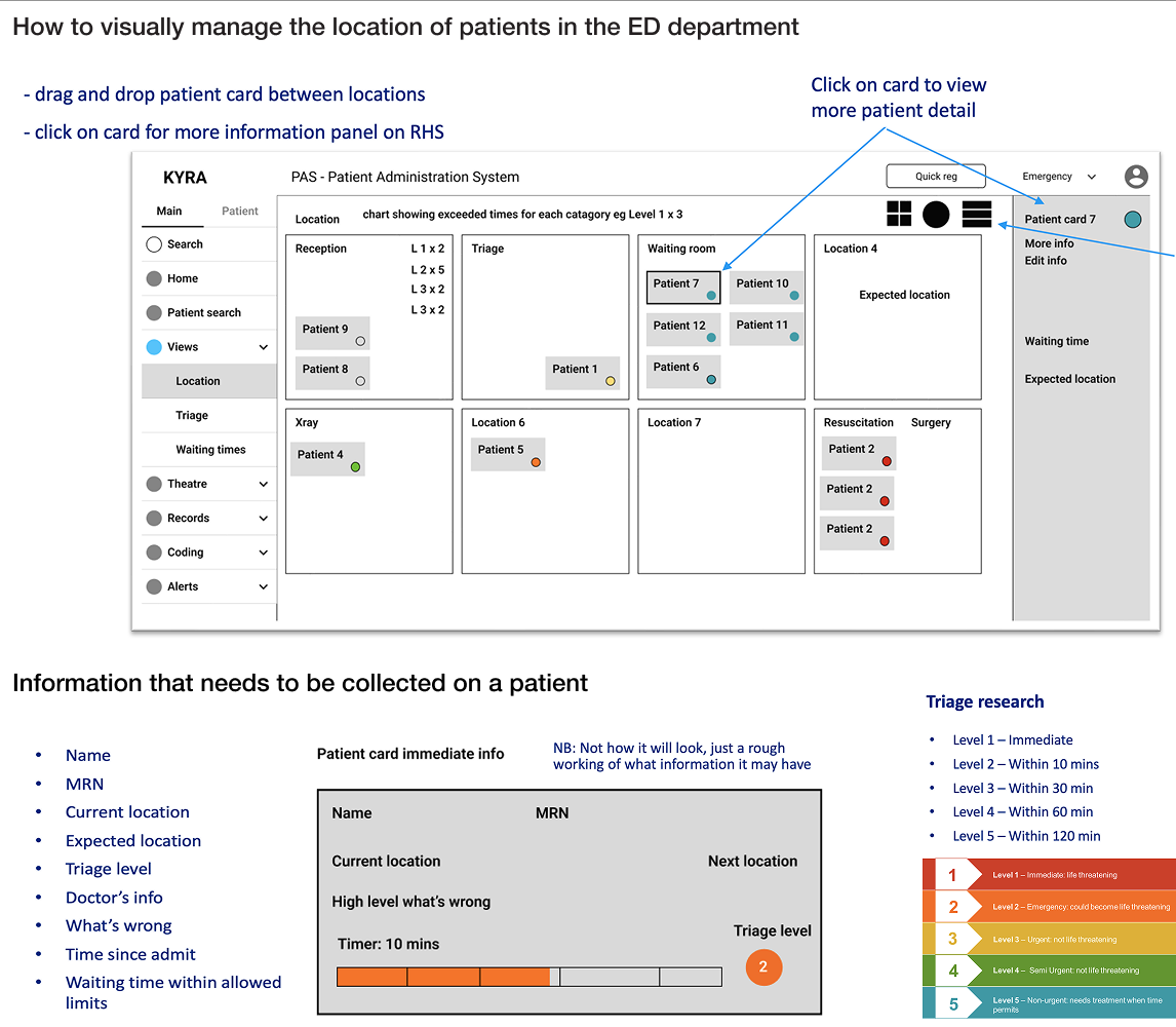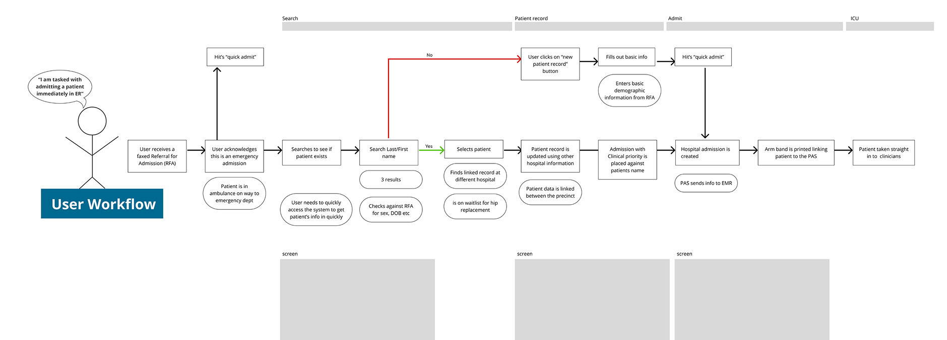 Mapping the ED admission process to identify PAS touchpoints and the foundational screens for MVP.