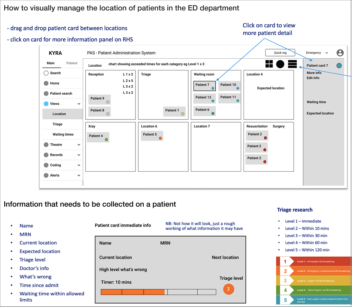 A major departure from legacy PAS was treating patient movement as a primary interaction rather than an administrative task.